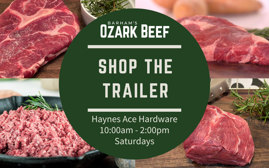 With the Conway Farmers Market season ending, it’s time for Barham’s Ozark Beef to switch gears to our “Shop the Trailer” events. We’ve decided to stay close to home and partner with Haynes Ace Hardware in Conway, AR to host our Shop the Trailer events at their store. Between now and mid-April, you’ll find us at Haynes Ace on most Saturdays from 10:00am – 2:00pm. There are a few weekends that Ed will be out of town, so check out the schedule for the remainer of 2023 below to make sure we are there when you show up. This schedule is also found on our Facebook page. With the Facebook events, make sure to click “going” so that you receive an event reminder the day of the event.